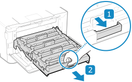 从包装材料中取出替换用一体式鼓粉盒。