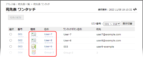 編集する宛先の名称(または番号、種類アイコン)をクリックする
