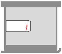 ヨコ向きにセットします。封筒のふたを右側にして、開いた状態でセットします。