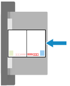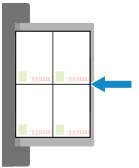 ※[画像向き優先]を[ON]に設定している場合は、プリントする面(宛名面または通信面)を下にして、はがきの上端を左側にした状態でセットします。
