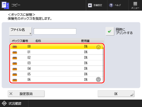 コピーの画面[ボックスに保管]画面が表示されます。