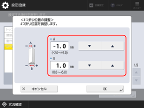 用紙の折り位置は、操作パネルを使用して調整します。パソコンからリモートUIを使用して調整することはできません。