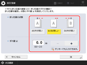 テストページで折り位置の状態とずれ量を確認して設定します。