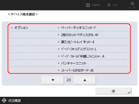 本機に装着しているオプション機器の名称やオプション機能を確認できます。