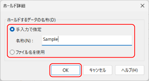 [ジョブの処理方法]で[ホールド]を選択し、[OK]をクリックする