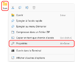 Cliquez avec le bouton droit sur le dossier créé, puis cliquez sur [Propriétés].