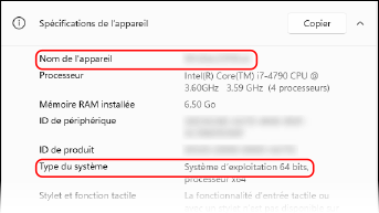 Pour un système d'exploitation de 32 bits, [Système d’exploitation 32 bits] est affiché.