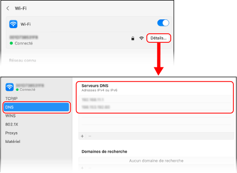 [DNS], et vérifiez le serveur DNS dans l'écran qui s'affiche.