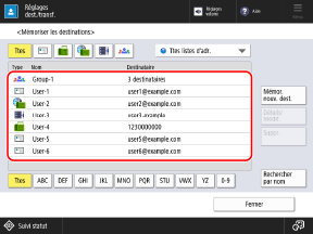 Si vous voulez vérifier les informations d'un destinataire, sélectionnez le destinataire et appuyez sur [Détails].