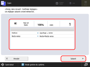 Vérifiez les réglages, et cliquez sur [Suivant].