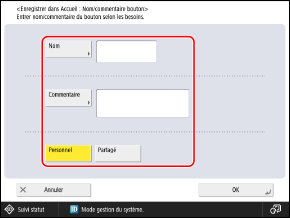 Saisissez le nom du bouton et un commentaire, puis sélectionnez [Personnel] ou [Partagé].