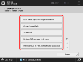 Personnaliser l'affichage et les opérations pour des utilisateurs individuels (réglages personnels)