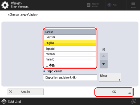 Sélectionnez la langue d'affichage, puis appuyez sur [OK].