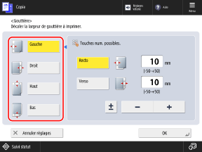 Écran de copieL'écran [Gouttière] s'affiche.