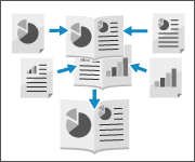 Vous pouvez utiliser les boutons de réglage dans l'écran de copie pour configurer les fonctions de finition, telle que l'agrafage ou l'arrangement de la disposition des pages, pour constituer des brochures et configurer d'autres réglages utiles pour la création de documents.