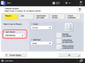 Écran de copieL'écran [Filigrane sécurisé] s'affiche.