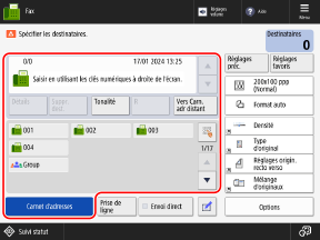 Réglages de transmission (TX) de faxLorsque des "réglages favoris" sont enregistrés, vous pouvez les appeler en appuyant sur [Réglages favoris].
