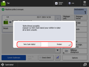 Lorsque le message [Vers Suivi statut] s'affiche