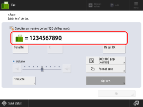 Saisissez le numéro de fax à l'aide des touches numériques.