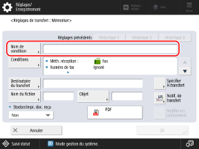 Appuyez sur [Nom de condition], saisissez un nom pour la condition de transfert, puis appuyez sur [OK].