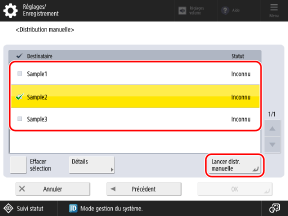 Cochez les cases des destinataires, et appuyez sur [Lancer distr. manuelle].