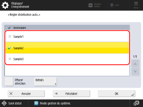 L'écran [Réglages distrib. infos périphérique] s'affiche.