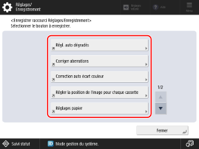 Sur le panneau de commande, appuyez sur [Raccourci Réglages/Enreg.] dans l’écran [Accueil].