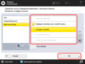 Sélectionnez les réglages à enregistrer en tant que raccourcis, puis appuyez sur [OK].