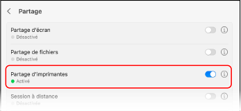Activez [Partage d’imprimantes], puis cliquez sur [