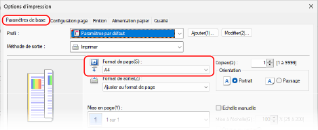 Pour imprimer sur du papier d'un format différent du [Format de page]