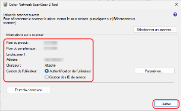 Outil Color Network ScanGear 2 démarre, et la fenêtre [Sélectionner un scanner] s'affiche.