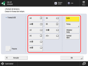 Dans l'écran de numérisation, appuyez sur le bouton de réglage du format de l'original.
