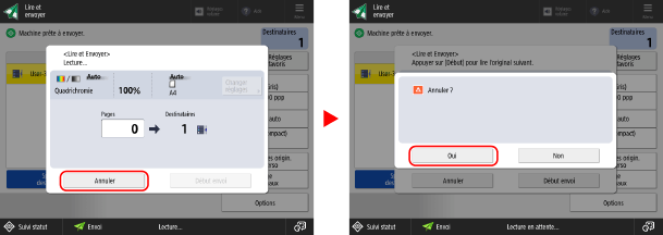 Pour annuler une numérisation avec cette machine, suivez les instructions affichées à l'écran.