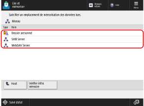 Écran [Accueil]L'écran permettant de sélectionner le type d'emplacement mémoire s'affiche.