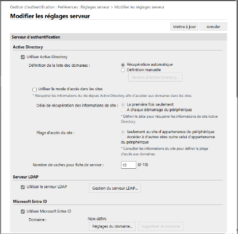 Configurez les informations d’Active Directory, du serveur LDAP ou du Microsoft Entra ID dans [Serveur d'authentification].