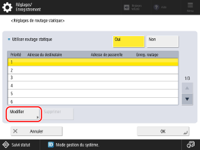 Sélectionnez un numéro qui n'a pas d'informations de routage statique enregistrées, puis appuyez sur [Modifier].
