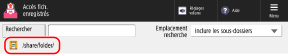 Appuyez sur [Rechercher] en haut de l'écran, et saisissez une partie du nom du dossier ou du fichier pour afficher une liste uniquement des dossiers ou des fichiers correspondants.