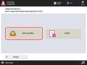 * Les fichiers sans réglages d'impression enregistrés ne peuvent pas être déplacés ou copiés dans une zone de stockage de la fonction de mise en attente.