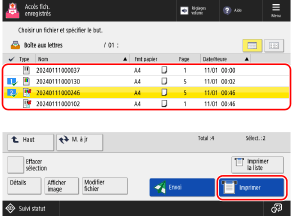 Réglages de boîte aux lettresSélectionnez le fichier à imprimer, puis appuyez sur [Imprimer].