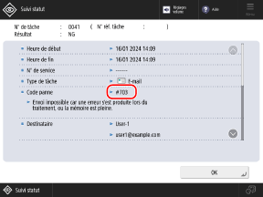 * Lorsque vous utilisez un destinataire dans le carnet d’adresses, vérifiez que l’adresse e-mail enregistrée dans le carnet d’adresses est correcte.