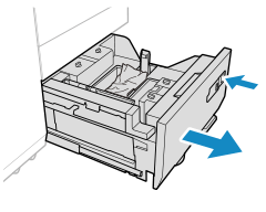 Retirez le papier coincé dans le 3 Cassettes papier haute capacité-E. Suivez les instructions du panneau de commande pour vérifier l’emplacement du bourrage papier et retirer le papier coincé.