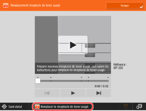 Remplacer le réceptacle de toner usagé.