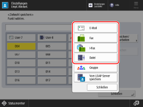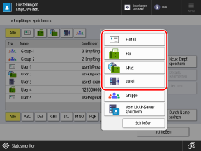 Wenn Sie Empfänger speichern, indem Sie Anwender auswählen, die derzeit in der Liste angezeigt werden, ist dieser Schritt nicht erforderlich. Gehen Sie zu Schritt 3.