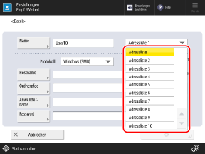 Registrieren von Zielen im Adressbuch (Bedienfeld)