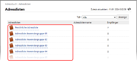 Remote UI-PortalseiteDer Bildschirm [Adresslisten] erscheint.