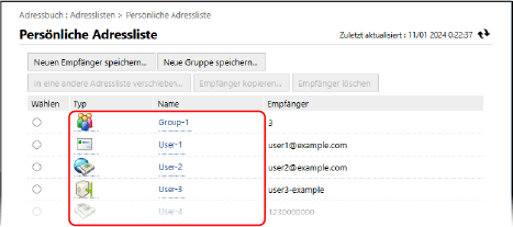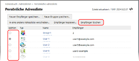Bearbeiten und Löschen von Empfängern im-Adressbuch (Remote UI)