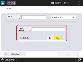 Wenn Sie einen E-Mail-Empfänger im Adressbuch oder unter einer Zielwahltaste speichern, konfigurieren Sie die unten beschriebenen Punkte.