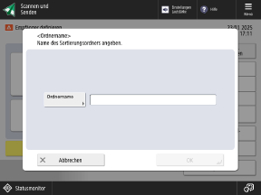 Tippen Sie auf [Ordnername], geben Sie den Namen des Ordners ein, den Sie erstellen möchten und tippen Sie auf [OK]