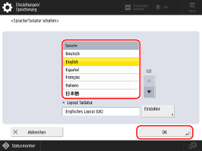 Wählen Sie die Anzeigesprache aus, und drücken Sie [OK].