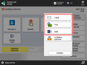 Wenn [Neuer Empfänger] nicht angezeigt wird, drücken Sie [Empfänger definieren].